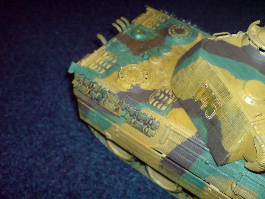Čestitam na završenoj maketi! Ali ipak par primjedbi: vide ti se djelovi koji nisu obojeni, a trebao si malo "omekšati" prijelaze između boja laganim drybrushingom tjekom nanošenja smeđe i zelene ,a mislim da ti to niti nije shema za taj tenk.. Vidim da si probao zacrniti "utore" u zimmeritu ,ok ,al to si trebao napraviti po cijelom zimmeritu ,a ne sam na djelovima.