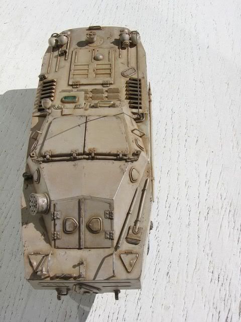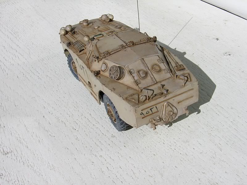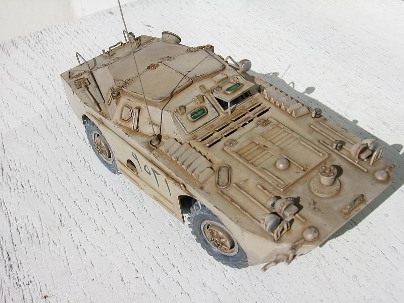 ...da, bilo bi zgodno, ali bih morao potražiti referentne fotke (a sigurno ih ima) da bi stvar izgledala autentičnije. A pitanje je da li je koji BRMD-1 bio prisutan na Kineskoj farmi, pogotovo ova , izviđačka verzija. (Eastern Express je "zaboravio" dati u setu mitraljez ) Tako slabo oklopljeno vozilo nije imalo što raditi na tom mjestu, ali nikad se ne zna. |