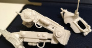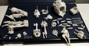 Još jedna vinjeta koja je sasvim slučajno ispala tak kak je ispala.Nabavim još jednog T.R.W.-a al malo drugačija verzija i prilikom sastavljanja gledajući nacrt na netu(umjesto da sastavljam nekom logikom)krivo sam zalijepil trap(ili kak se zove onaj dio kaj drži noge)u kontra smjeru.Umjesto da zglob ide dolje ja ga zaljepil prema gore.'bem ti nacrt i sve i kaj bum sad,probal sam odljepit nogu od tog trapa i naravno resin pukne.Pa sam odlučil kad sam ga već bacil u smeće da ga ipak nekak iskoristim.Također iskoristil sam dvije figure nekakvih waffen vojnika koji su tak iskomplicirani za sastavljanje da sam skoro mlade dobil.Tolko sitnih djelića i k tome ljepi se trenutnim ljepilom,naravno bez ikakvih nacrta pa ti skuži gdje što dolazi.