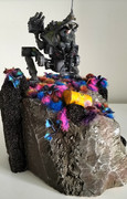 Sama stijena(baza) je od debelog stirodura a crna šupljikava stijena je također od neke vrste stirodura za kojeg nemam pojma kako se uopće zove i lako se mrvi a dok ga režete skalpelom škripi.Samo bojanje stijene je rezultat moje pogreške;naime nakon što sam stirodur obojao sivim primer-om nanio sam dark mud boju i na to još i wood grain i rezultat je bio užasan.Naravno da to ispravim zaključio sam obrisat papirom wood grain boju prije nego se osuši i ustvari tim brisanjem obrisao sam obje boje na višim bridovima te otkrio svi primer i na kraju ispalo kao prava stijena.