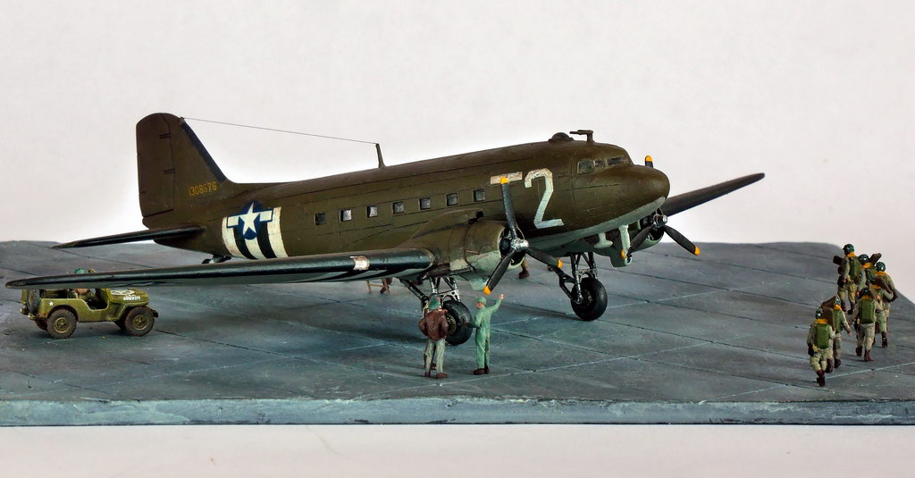 Ovu dioramicu u 1/144 sam krenuo dosta davno , zrakoplov, Rodenov C-47 i podlogu sam složio proljetos, prije Kupa a ostale mi "samo figure i jeep.