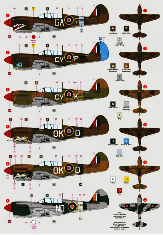 FX779 112 Sqn RAF. Navodno OK-D u 450 Sqn RAAF. 5 Sqn SAAF (GL-E ili F), gore zeleno, dolje sivo. Oboren, Aquino, 19.5.44.