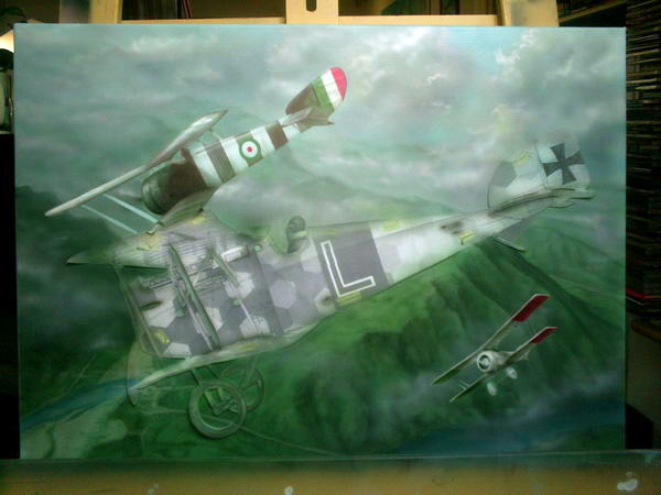 Odlučio sam ga nacrtati u svom posljednjem avionu Aviatik D1 i to možda u svom poslijednjem letu. Kažu da je najvjerojatnije oboren od strane talijanskih Hanriot HD1 Alda Astolfia. Nažalost mali mi je problem nepoznavanje talijanskih aviona pa neznam kako bi trebao bit ofarban, izgleda da su dosta često bili srebrni.
