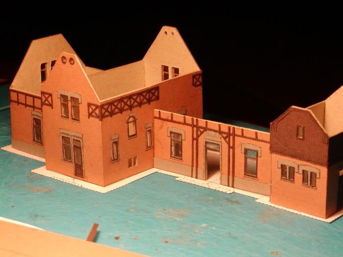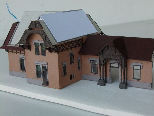 Meni ionako nije bio cilj pogoditi točnu boju fasade, pogotovo što sam stanicu izmjenio na način da sam ju snizio za jedan kat i skratio po dužini za nešto manje od deset metara, pa to zapravo više i nije željeznička stanica Bistrik, već mi je ona poslužila samo kao predložak. Fasadu sam izrađivao od 130-gramskog papira u boji i nisam ju dodatno farbao, dakle koristio sam papir u dvije različite boje za koje sam zaključio da se dobro slažu, barem se meni tako čini.  |