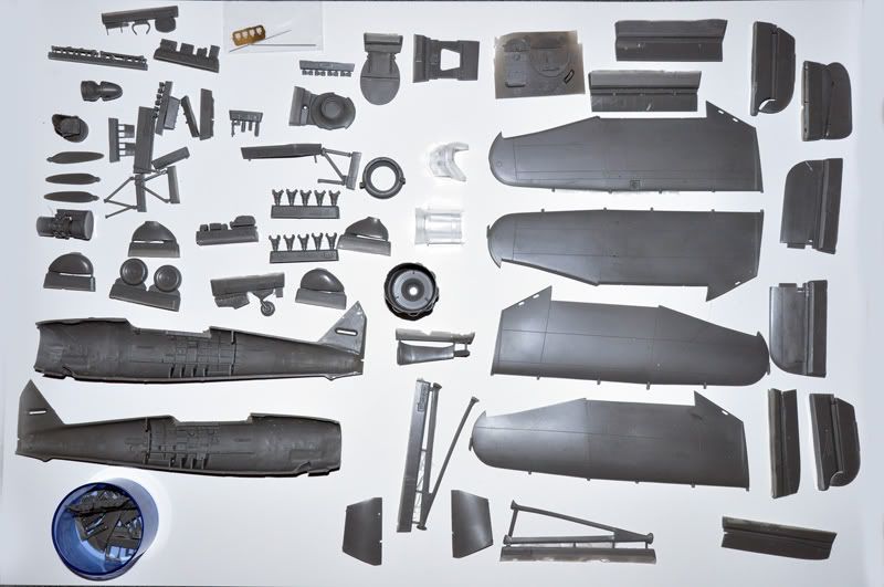 Maketa je stigla u neuglednoj ali vrlo čvrstoj kutiji od debelog kartona. Svi dijelovi (a ima ih 149) pakirani su u nekoliko plastičnih vrećica. Tu je 141 dio od sive resinske smole, dva dijela od prozirne smole, 4 jetkana nišana za MG 15 (3 su rezerva) 2 čelične cjevčice, instrukcije i set naljepnica.
