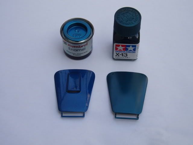 Prvo sam nabavio Humbrolovu Baltic blue koja mi se jako svidjela, ali onda je uletila i Tamiyina dark blue metallic: