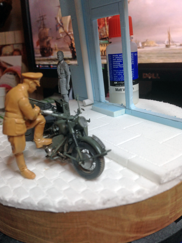 Pozdrav svima. Poceo sam sa izradom manje vinjete na kojoj ce biti jedna maketa bmw r75 motor sa prikolicom, ulica, izlog i tako neke sitnice. Moguce je da stavim i jednu dvije figure ali to cu jos vidjeti. Prica je smjestena u Njemackoj u WWII '42 godine Pa eto vidjecemo kako ce ispast
