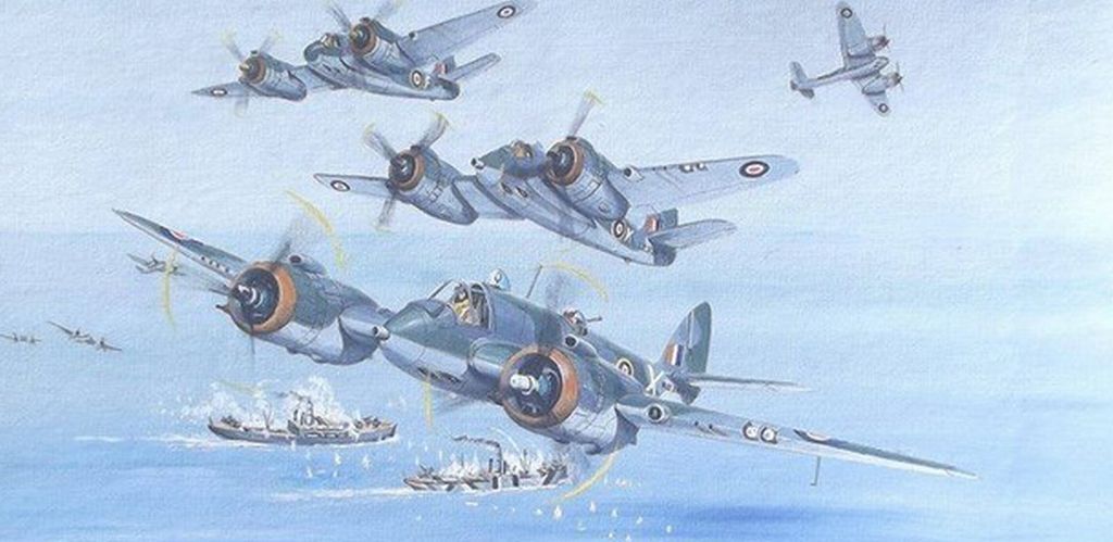 Isti je prikazan na ovoj ilustraciji - na krilima gore su oznake iz 1945., ali brodovi su Gertrude i Sabine koji su napadani 1.6.1944. 19 Sqn SAAF tad još ne postoji (nego je 227 Sqn RAF).