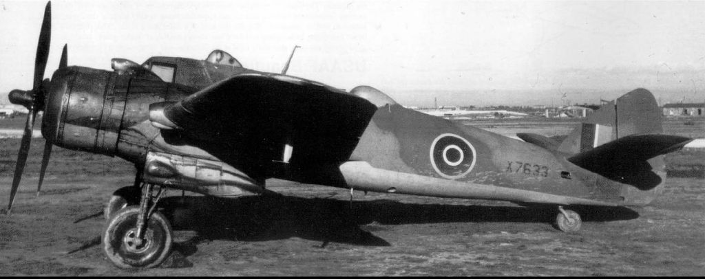 Beaufighter TFX 'A' NV430 iz 19 Sqn SAAF kojim se pilot Lt Lindsay-Rae vratio u bazu 20.3.1945.