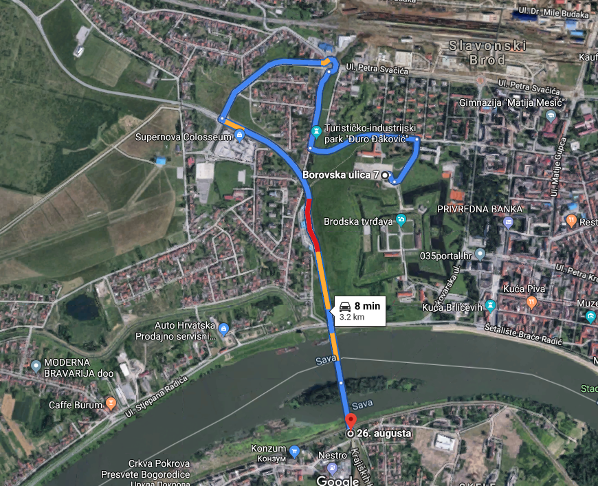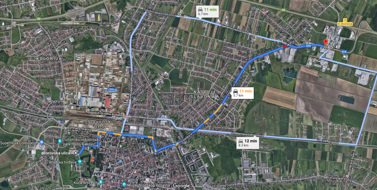 iz smijera Lipovca/Beograda i Osijeka lokalnom cestom (silazak s A3 je Slavonski Brod istok),