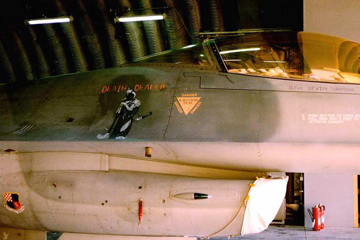 Kod Death Dealera je jedna specifičnost. To je (barem meni) jedini poznati F-16 sa izvrnutim nacionalnim oznakama. Pogledaj oznaku na trupu ispod repa i usporedi je sa bilo kojim F-16, pa će ti biti jasno. Sve 4 su izvrnute uključujući i onu tamniju ispod krila. Elite to daje krivo.