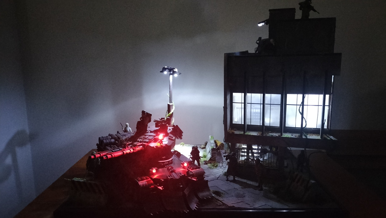 Nakom mjeseci i mjeseci izrade i sakupljanja modela,izrade dodataka za dioramu,montaže rasvjete te razmišljanja kak i na koji način odabrati raznovrsne boje,gdje što pozicionirati a da efektno to sve skup izgleda jer svaka figura je različita,svaki dodatak poput stupa za rasvjetu ili pak betonske barikade i što šta još je home made produkt.Ma mogel bi u nedogled pisat kaj sam sve upotrebil i koje sve materijale,decale,posipe,travu....