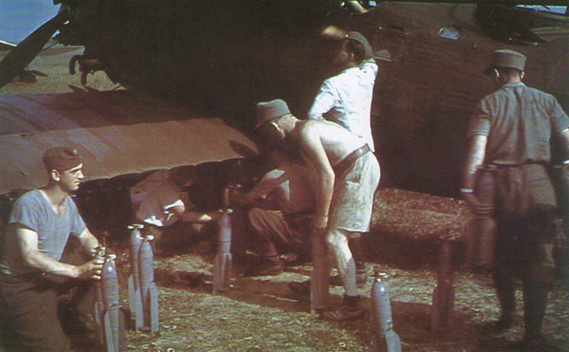 a ovdje se vide oružari kako stavljaju bombe u jedan od tih prostora: