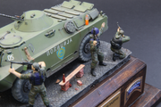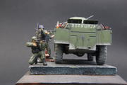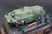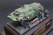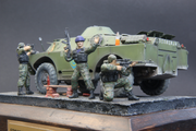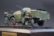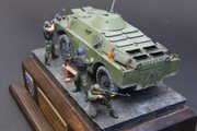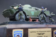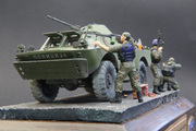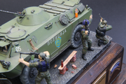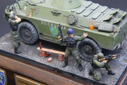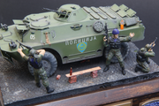 Pozdrav, radi se o stara Dragonova maketa BRDM-2.Ubacio sam set eduardovog eceraja,metalna cev KPVT-a RB model,i jos propratne sitnice.Figure su Zvezdini Specnaz vojnici,oruzje iz tamijinog AK seta.Fali jos ivice da se obrube sa neke adekvatne ivicnajke,ali to,nekad nadam se.Maketa pretstavlja makedonski policijski BRDM -2 koji pripadao na ,,Edinica za Specijalni Zadaci-,,Tigar,, 2001 god rat u Makedoniji, grad Tetovo,naselje Koltuk.