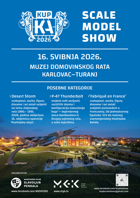 Dragi svi, najavljujemo kako će se KupKa sljedeće godine odr?ati u subotu, 16.05.2026. na već poznatoj lokaciji tj. u Muzeju Domovinskog rata, Karlovac - Turanj, adresa: Turanj 2.