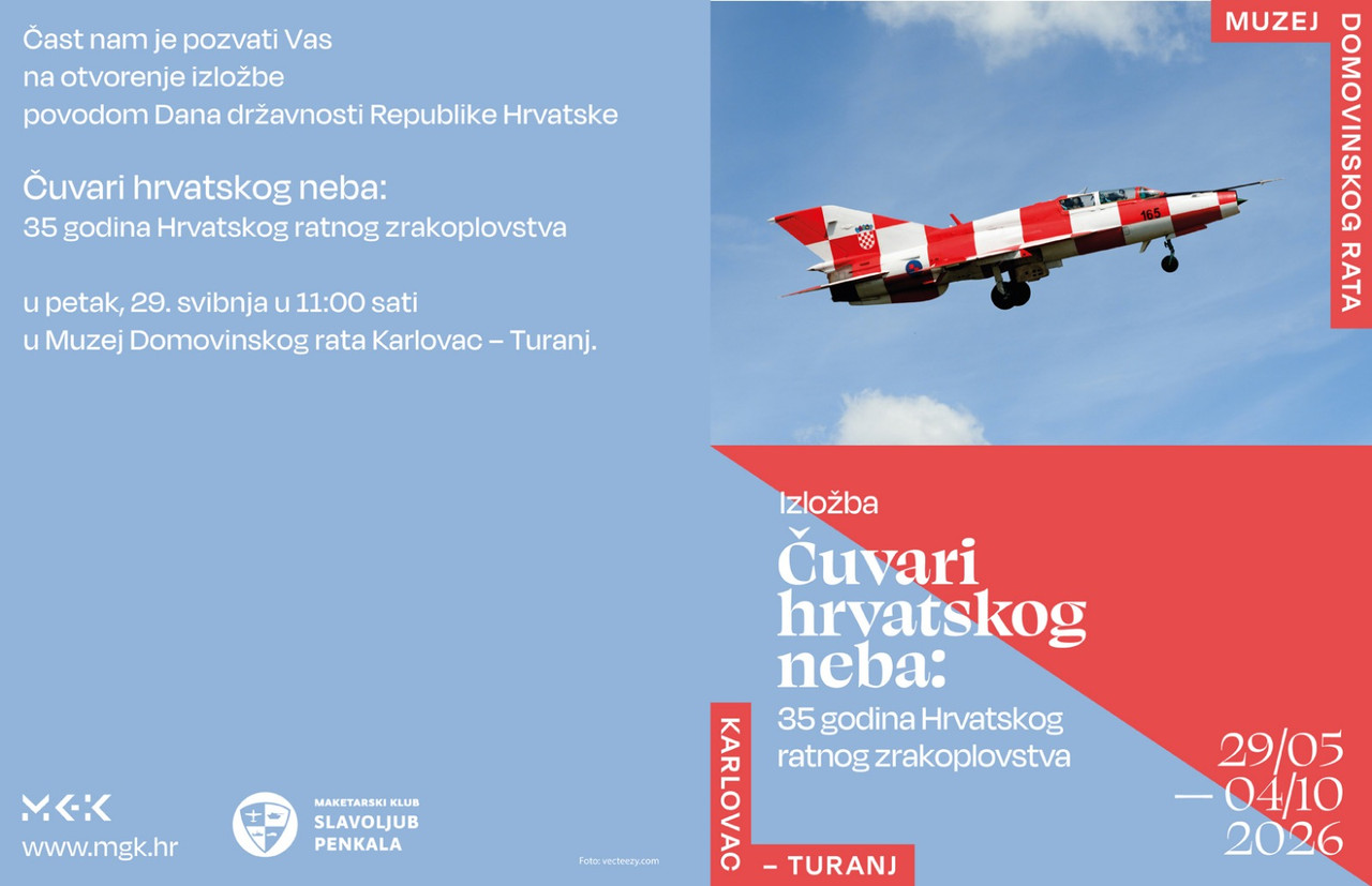 Maketarski klub Slavoljub Penkala vas poziva na otvorenje izloĹľbe ÄŚuvari hrvatskog neba, povodom obiljeĹľavanja 35 godina od osnutka Hrvatskog ratnog zrakoplovstva.